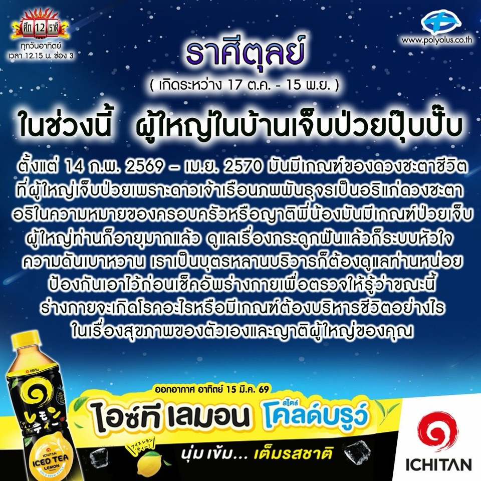 วันที่ 16 มี.ค..69 "ลักษณ์ ราชสีห์" หรือ "หมอลักษณ์ ฟันธง" นักพยากรณ์ชื่อดัง ทำนายดวงผ่านอินสตาแกรม @polyplus_jad_hai ระบุว่า...