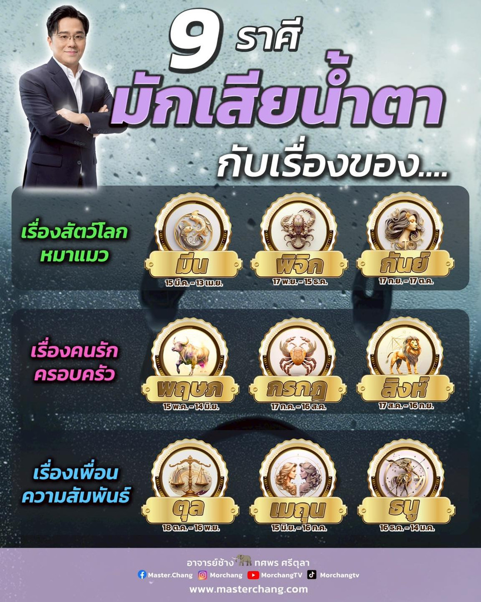9 ราศีมักเสียน้ำตากับเรื่องของ…