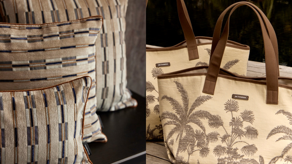 ด้านกระเป๋าและสินค้าตกแต่งบ้านก็ไม่น้อยหน้า ด้วยผ้าทอลาย Anin ถ่ายทอดเส้นสาย พาเลตสี และผิวสัมผัสสไตล์โมเดิร์นมาตัดเย็บอย่างประณีตเป็นกระเป๋าหลากรูปแบบ ไม่ว่าจะเป็นกระเป๋าเครื่องสำอาง กระเป๋าโท้ต กระเป๋าสะพายไหล่ รวมถึง Anin Chenille Tote กระเป๋าโท้ตทรงสวยขนาดพอดีที่จุของได้เยอะ พร้อมด้วยอีกหนึ่งลายแสนงดงามอย่าง Coconut Palm ถ่ายทอดทิวทัศน์ของต้นปาล์มท่ามกลางพฤกษานานาพันธุ์ในสีเขียวเซจบนกระเป๋าผ้าคอตตอนซาตินสีงาช้าง โดยผ้า Chenille ทำให้ลายดูมีมิติและมอบผิวสัมผัสนุ่ม นำเสนอกระเป๋าหลายทรง อาทิ กระเป๋าสะพายข้าง กระเป๋าทรงขนมจีบ รวมถึงกระเป๋าแนวรีสอร์ตอย่าง Capri Beach Bag และ Travel Clutch จะใช้สะพายริมหาดหรือในวันพักผ่อนสบาย ๆ ก็ดูดี
