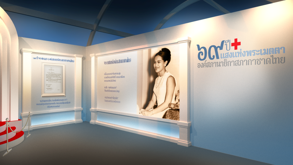 โซนจัดแสดงนิทรรศการ “69 ปี แสงแห่งพระเมตตา องค์สภานายิกาสภากาชาดไทย” จัดแสดงพระราชกรณียกิจ สมเด็จพระนางเจ้าสิริกิติ์ พระบรมราชินีนาถ พระบรมราชชนนีพันปีหลวง เมื่อยังทรงดำรงตำแหน่งสภานายิกาสภากาชาดไทย นับตั้งแต่ปี 2499 จนถึงปี 2568 รวมเวลา 69 ปี โดยถ่ายทอดผ่านนิทรรศการ 4 โซน เริ่มต้นด้วย โซน“แสงแห่งพระเมตตา” มีการจัดแสดงพระเก้าอี้ โต๊ะทรงงานฯ และการจัดแสดงภาพพระราชกรณียกิจเพื่อให้ประชาชน น้อมรำลึกในพระเมตตาที่ทรงขับเคลื่อนภารกิจด้านมนุษยธรรมของสภากาชาดไทยตลอด 69 ปี โซน “พระราชกรณียกิจเพื่อทุกชีวิต” ที่จัดแสดงพระราชกรณียกิจ เพื่อการบรรเทาทุกข์ บำรุงสุขแก่ประชาชน อาทิ เหตุการณ์บ้านเขาล้าน พระเมตตาที่มีต่อการแพทย์ การบรรเทาทุกข์ผู้ประสบภัย ด้านการบริการโลหิต ด้านส่งเสริมคุณภาพชีวิต ผ่านแสงสีเสียงในการถ่ายทอดเรื่องราว โซน “พระเมตตาแห่งการแบ่งปัน” นำเสนอพระราชกรณียกิจด้านการหารายได้ ทรงดำริริเริ่มงานหารายได้ใหม่ ๆ โดยเฉพาะในงานกาชาด และโซน “แรงบันดาลใจจากพระเมตตา” จัดแสดงเป็นสวนดอกไม้ พร้อมข้อความพระราชดำรัสที่ทรงพระราชทานในโอกาสต่าง ๆ ผ่านการนำเสนอด้วยเทคนิคทางดิจิทัล ภายในนิทรรศการฯ ยังมีกิจกรรมเชิญชวนประชาชนร่วมบริจาคเงินเพื่อโดยเสด็จพระราชกุศลบำรุงสภากาชาดไทย ผู้บริจาคจะได้รับพระบรมฉายาลักษณ์ สมเด็จพระนางเจ้าสิริกิติ์ พระบรมราชินีนาถ พระบรมราชชนนีพันปีหลวง ในรูปแบบโปสการ์ดอันทรงคุณค่ายิ่ง จำนวน 12 ภาพ จำนวน 60,000 ใบ เป็นที่ระลึก