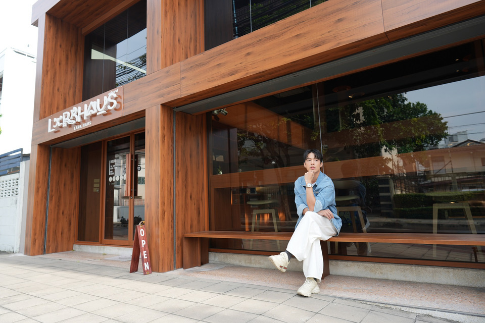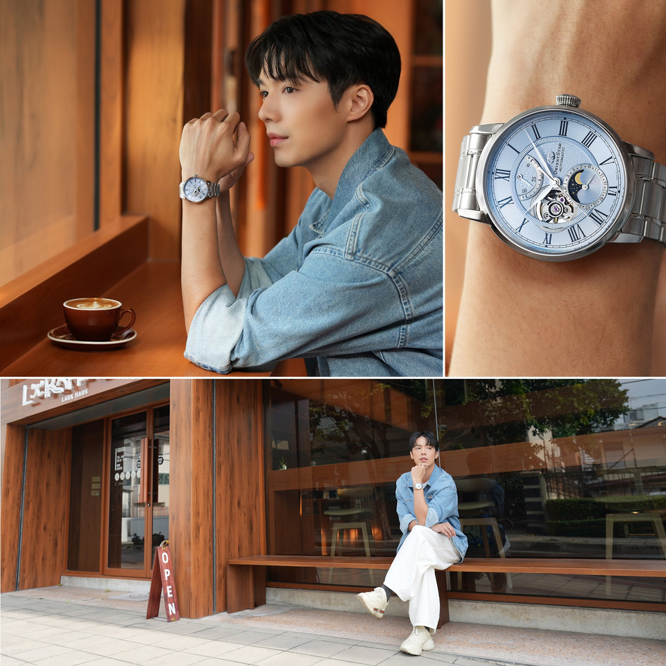 และอีกหนึ่งลุคของหนุ่มจ๊อบกับวันพักผ่อนสบายๆ กับกิจกรรมที่ชอบทำเสมอ คือการค้นหาร้านกาแฟที่มีบรรยากาศตกแต่งเรียบง่ายและสงบเพื่อนั่งจิบกาแฟรสชาติโปรด อย่างร้านกาแฟ LARK HAUS (Pets Friendly) คาเฟ่เปิดใหม่ที่ ซ.นราธิวาสฯ 10 บรรยากาศตกแต่งภายในร้านเรียบง่ายสไตล์ญี่ปุ่นแบบที่หนุ่มจ๊อบชอบ มีกาแฟ signature อย่าง ABC (Apple Butterscotch Coffee) เป็นกาแฟเบาๆ เหมาะกับวันนั่งชิล สำหรับเสื้อผ้าในวันสบายๆ ไม่มีธุระแบบนี้ หนุ่มจ๊อบเลือกสไตล์แบบ Casual เป็นเสื้อยืดสีขาวเรียบแบบหลวมนิดหน่อย และสวมทับด้วยเสื้อแจ็กเก็ตยีนส์เดนิมฟอกสีฟ้าอ่อนแบบ Over Size ไว้ด้านนอก และเลือกกางเกงสีขาวทรง Baggy แบบที่ตัวใหญ่หน่อยใส่สบายแบบหลวมๆ คู่กับรองเท้า Sneaker สีขาวมีลายเล็กน้อยให้ดูเข้ากัน และเลือกนาฬิกา Orient Star รุ่น M45 F7 Mechanical Moon Phase เป็นนาฬิการุ่นใหม่ลิมิเต็ดอิดิชั่น ที่เป็นเรือนเวลาไอคอนิกอย่างแท้จริงจากคอลเลคชั่นคลาสสิก M45 ซึ่งตั้งชื่อตามรหัสของกลุ่มดาวไพลยาดีสที่สะท้อนดีไซน์ที่เรียบหรูและทันสมัย โดยโมเดลใหม่นี้ได้ผนึกความคลาสสิคและความทันสมัยเข้าไว้ด้วยกัน “เป็นนาฬิกาที่มีหน้าปัดสีฟ้าอ่อนเข้ากับชุดที่ใส่ในวันนี้ มีความมินิมอลแต่ก็แอบโชว์รายละเอียดบนหน้าปัดได้อย่างน่าทึ่งไม่ว่าจะหน้าต่างแบบเซมิสเกเลตัน และ Moon Phase สีน้ำเงินแอบดูมีความเป็นนาฬิกาคอมพลิเคชั่นอยู่ในตัวแบบที่ผมชอบ ช่วยให้ชุดวันสบายๆ ของผมดูเป็นแบบ Simplify the look, Amplify the detail ได้เลย” หนุ่มจ๊อบกล่าว