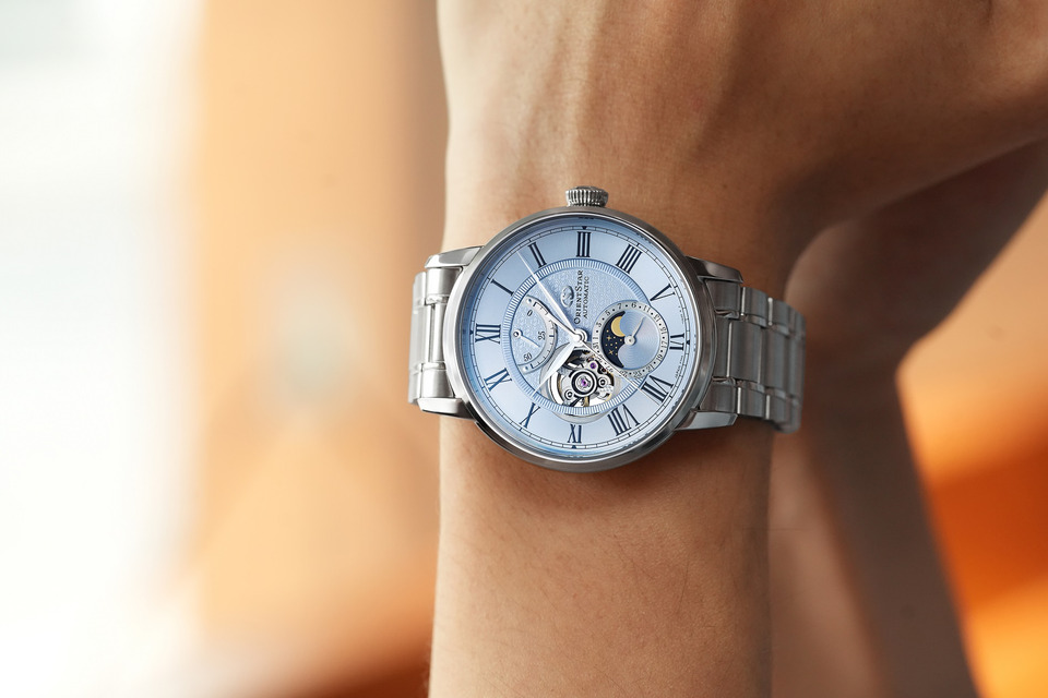 โดยนาฬิการุ่นใหม่ Orient Star M45 F7 Mechanical Moon นั้นจะมีดีไซน์ผสมผสานองค์ประกอบสำคัญ 3 อย่างได้แก่ หน้าปัดแสดงพลังงานสำรองที่เป็นเอกลักษณ์ของโอเรียนท์ สตาร์, กลไก Moon Phase พร้อมหน้าต่างแสดงวันที่และเข็ม และหน้าต่างแบบเซมิสเกเลตันที่เผยให้เห็นกลไกเครื่อง in-house Automatic Caliber F7M42 ที่ให้ความแม่นยำสูงอยู่ในช่วง +15 ถึง -5 วินาทีต่อวัน และสำรองพลังงานได้สูงสุดถึง 50 ชั่วโมง การกลับมาของดีไซน์ในโมเดลใหม่นี้ ถือเป็นการรื้อฟื้นความคลาสสิกของ Moon Phase เดิมด้วยตัวเลขโรมันบนขอบนอกของหน้าปัดและลวดลายโลโก้ OS แบบโมโนแกรมอย่างสวยงาม ตัวเรือนทรงกลมและสายสแตนเลสสตีลคุณภาพสูง (SUS316L) ที่ออกแบบมาให้มีข้อสายสั้นเพื่อการปรับขนาดได้ง่ายขึ้น และเพิ่มสายนาฬิกาหนังวัวสีกรมท่าในรุ่นลิมิเต็ดอิดิชั่นมาให้ในเซตอีกด้วย Orient Star M45 F7 Mechanical Moon Phase รุ่นลิมิเต็ดอิดิชั่น มีจำนวนผลิตเพียง 190 เรือนเท่านั้น