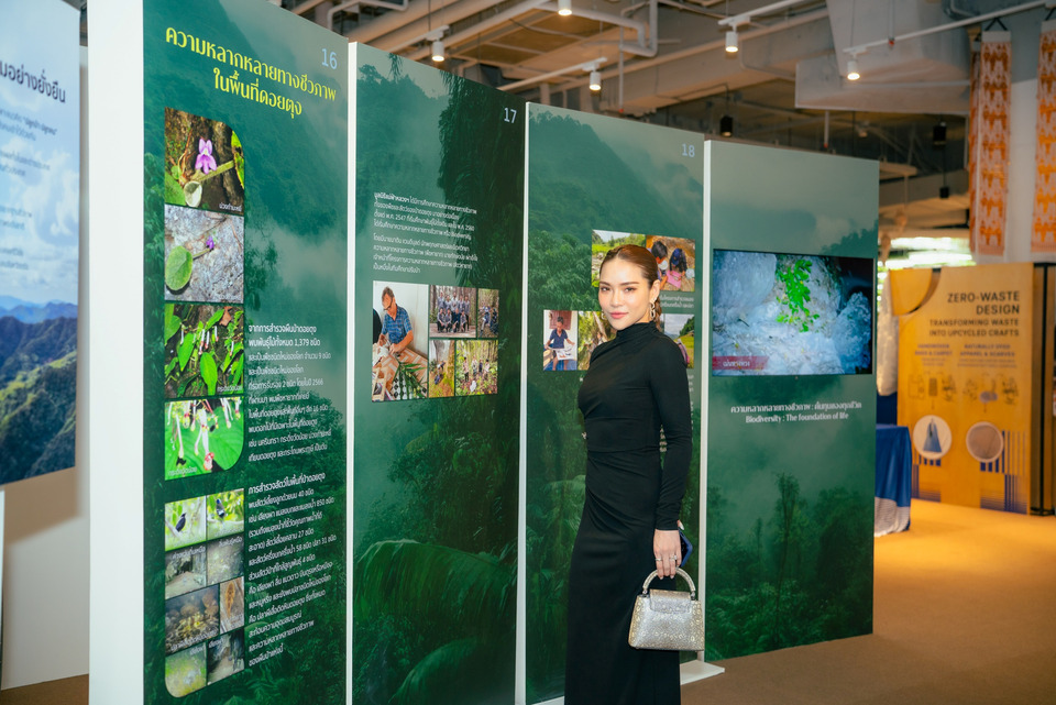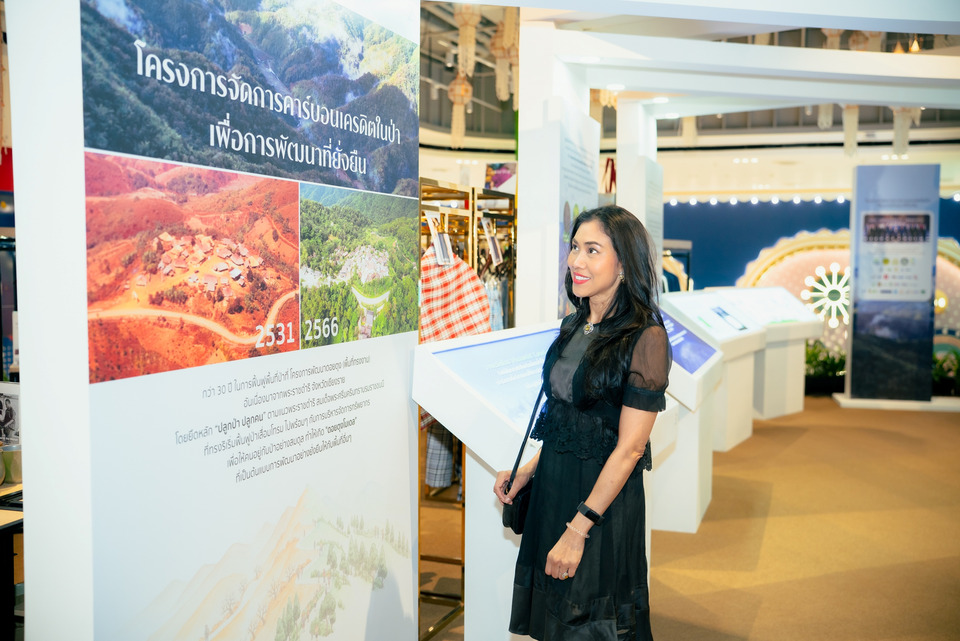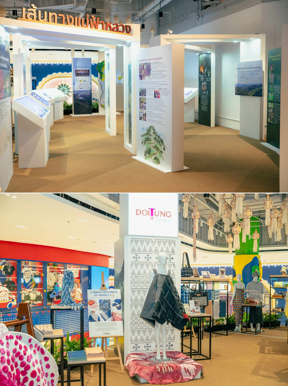 นิทรรศการยังเชื่อมโยงแนวคิดความยั่งยืนให้คนเมืองเข้าถึงผ่านผลิตภัณฑ์แบรนด์ธุรกิจเพื่อสังคม “ดอยตุง” ชวนให้เห็นว่า การตัดสินใจในชีวิตประจำวันสามารถร่วมดูแลป่าและชุมชนได้จริง และเป็นส่วนหนึ่งของการขับเคลื่อนการพัฒนาที่จับต้องได้ ต่อเนื่องถึงภารกิจใหม่ของมูลนิธิแม่ฟ้าหลวงฯ ที่ขยายผลจากดอยตุงสู่ป่าชุมชนทั่วประเทศ ผ่าน “โครงการจัดการคาร์บอนเครดิตในป่าเพื่อการพัฒนาที่ยั่งยืน” สนับสนุนให้ชุมชนร่วมดูแลป่า สร้างคาร์บอนเครดิตให้ภาคเอกชนเข้ามามีส่วนร่วม เกิดรายได้หมุนเวียนเพื่อดูแลป่า ลดไฟป่า หมอกควัน และฝุ่น PM 2.5 พร้อมตอกย้ำบทบาทมูลนิธิฯ ในฐานะผู้นำและที่ปรึกษาด้านความยั่งยืนที่ทำงานครบทุกมิติ ทั้งคน ชุมชน ธรรมชาติ และเศรษฐกิจ ทั้งหมดยังคงยึดการพัฒนาสังคมและสิ่งแวดล้อมโดยยึดคนเป็นศูนย์กลาง และทุกโครงการได้สร้าง total well-being ให้เกิดขึ้นในไทยโดยไม่ทิ้งใครไว้ข้างหลังจนเป็นที่ประจักษ์ และยอมรับทั่วโลก