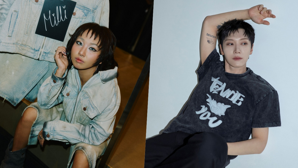 มิลลิ - ดนุภา คณาธีรกุล สะท้อนสไตล์แร็ปเปอร์สุดเท่ออกแบบมาเป็นแจ็คเก็ตเดนิม และกางเกงยีนส์ขาสั้นทรงจอร์ทส์ (Jorts) ที่เน้นเทคนิค Washed & Distressed Effect เล่นกับเฉดสีฟอกซีดอ่อน สเปรย์เพ้นต์ตามขอบปก ขอบเอว และปลายแขนเสื้อ เสริมด้วยเทคนิคสลัดสีและ 3D Crinkle ถ่ายทอดความดิบ เท่ สตรีท และ Self-Expression แบบ Unisex ได้อย่างชัดเจน