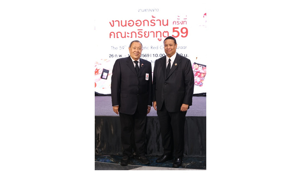 สภากาชาดไทย โดย Donation HUB ร่วมกับคณะภริยาทูตประจำประเทศไทย จัดงานแถลงข่าว “งานออกร้านคณะภริยาทูต ครั้งที่ 59” ภายใต้แนวคิด “จากแรงบันดาลใจ…สู่การให้เพื่อมนุษยธรรม” วันพุธที่ 4 กุมภาพันธ์ 2569 ณ NEXTOPIA ชั้น 5 ศูนย์การค้าสยามพารากอน โดยมี นายขรรค์ ประจวบเหมาะ ผู้อำนวยการสำนักงานจัดหารายได้ สภากาชาดไทย พร้อมด้วย นางทาลา ดิโอนิซี ภริยาเอกอัครราชทูตสาธารณรัฐอิตาลี ประจำประเทศไทย ประธานคณะกรรมการจัดงานออกร้านคณะภริยาทูต ประจำปี 2569, นางทราง ธิ ถู โฮ ภริยาเอกอัครราชทูตสาธารณรัฐเวียดนาม ประจำประเทศไทย ประธานคณะกรรมการจัดทำสลากงานออกร้านคณะภริยาทูต ประจำปี 2569 และ นางจันทร์ประภา วิชิตชลชัย รองผู้อำนวยการสำนักงานจัดหารายได้ สภากาชาดไทย รวมถึงผู้สนับสนุนการจัดงาน ร่วมเป็นเกียรติในงาน