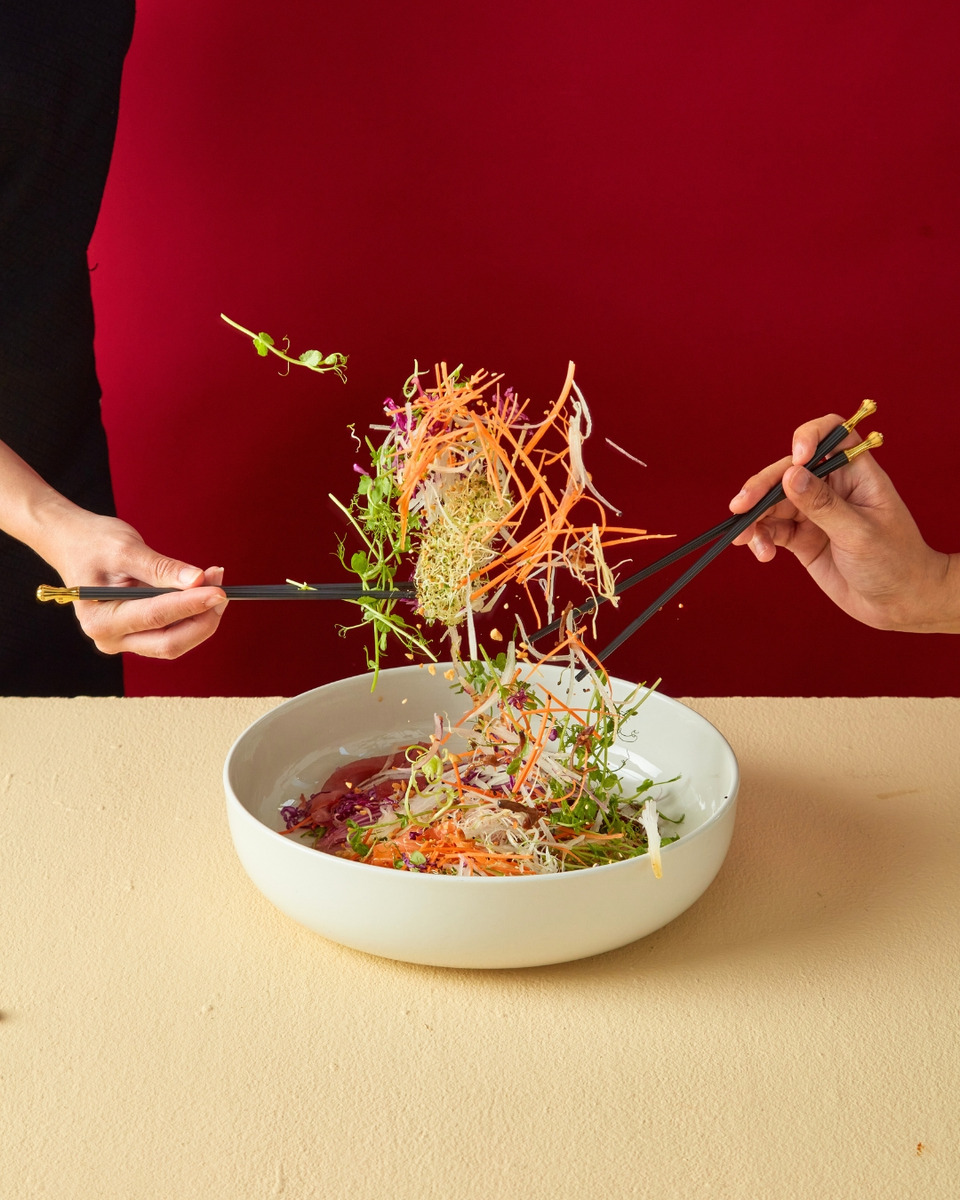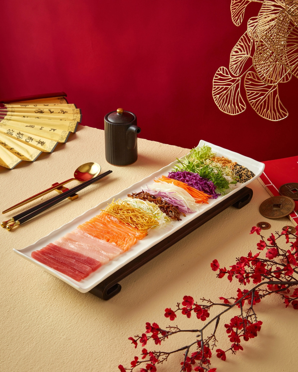 เริ่มต้นเสริมสิริมงคลด้วยเมนูไฮไลต์ “หยี่ซังโล้” สลัดมงคลตามธรรมเนียมโบราณที่เปี่ยมด้วยความหมายและสีสันสดใส โดยแขกทุกท่านจะได้ร่วมใช้ตะเกียบคลุกเคล้าส่วนผสมให้สูงขึ้น สื่อถึงการ “ชูโชคลาภ” พร้อมอธิษฐานขอให้ชีวิตรุ่งเรืองตลอดปี