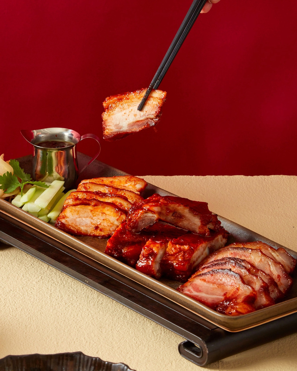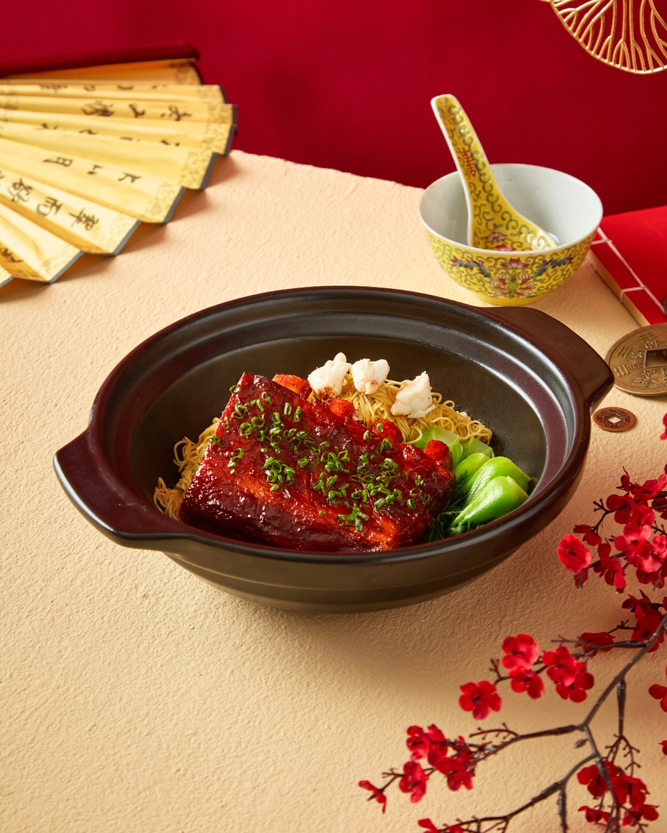 ต่อด้วยความอร่อยจาก บาร์บีคิวหมูแดงสไตล์ฮ่องกง 3 อย่างที่รวมทั้งหมูแดงรสเลิศ หมูกรอบชั้นดี และซี่โครงหมูอบเนื้อนุ่ม สัญลักษณ์แห่งความอุดมสมบูรณ์ นอกจากนี้ ยังมีเมนูต้นตำรับที่ปรุงอย่างประณีต อาทิ บะหมี่ไข่ซี่โครงหมูแดงและเนื้อปู ข้าวหมูแดงสามชั้นอบหม้อดิน และเมนูที่ขาดไม่ได้อย่าง ซุปเกี๊ยวน้ำหมูแดงและหมูสับ รสชาติกลมกล่อม คล่องคอ ก่อนปิดท้ายมื้ออาหารด้วยของหวานมงคล “ขนมอังกู๊” ( หรือขนมเต่าแดง สอดไส้ถั่วเขียวและมันหวาน รสชาติละมุนละไม โดย “เต่า” เป็นสัญลักษณ์แห่งสุขภาพแข็งแรงและอายุยืนยาว