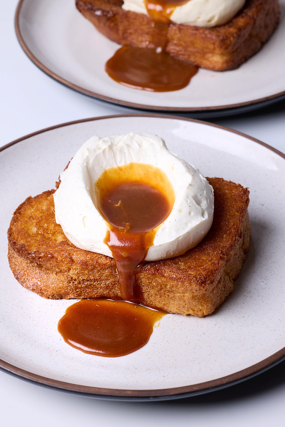 อีกเมนูคือ Brioche French Toast การตีความใหม่ของขนมปังบริยอชสูตรเฉพาะของร้าน นำมาชุบเนยฝรั่งเศสคุณภาพสูง โรย Brown Sugar แล้วเบิร์นจนเกิดชั้นคาราเมลบางกรอบเคลือบทั่วผิว เสิร์ฟพร้อมครีม วานิลลา และ Salted Caramel สูตรลับ กลิ่นหอมละมุนที่ชวนให้หลงรักตั้งแต่คำแรก