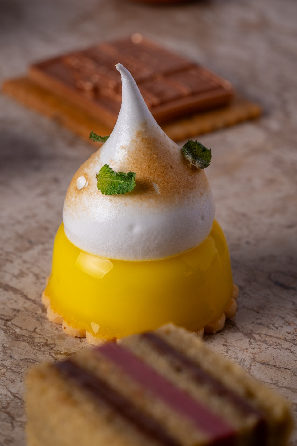ปิดท้ายด้วยเมนูขนมหวานรังสรรค์โดยเชฟฮาตะ อาทิ เลมอนมินต์พาย เค้กเฮเซลนัตช็อกโกแลตนม เค้กพิสตาชิโอและแยมเชอร์รี มาการองแอปริคอตและพิสตาชิโอ พราลีนเฮเซลนัตและคาราเมลคุกกี้ และบริยอชโรลพร้อมแยมลูกแพร์และครีมมะลิ
