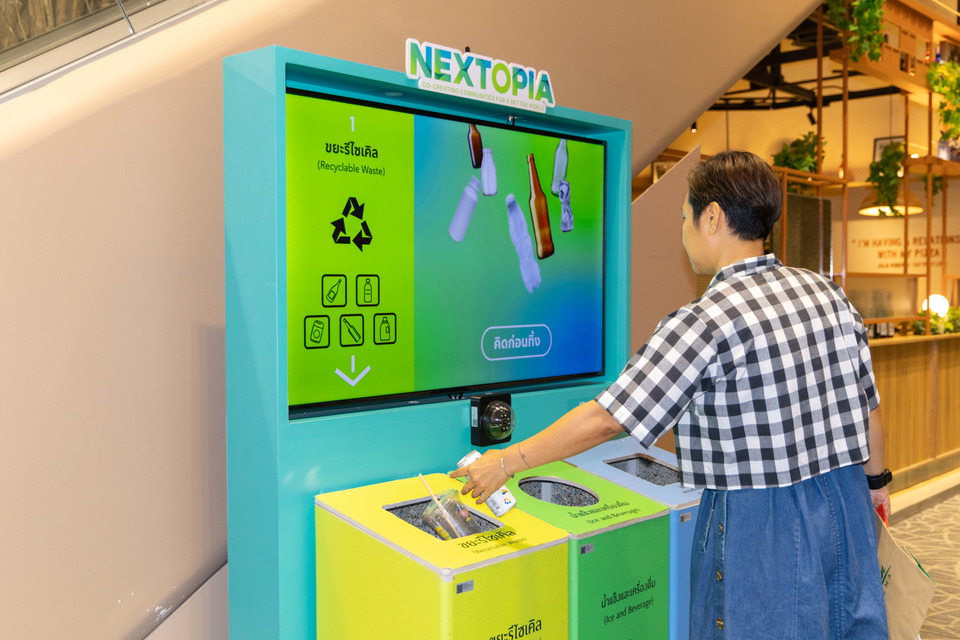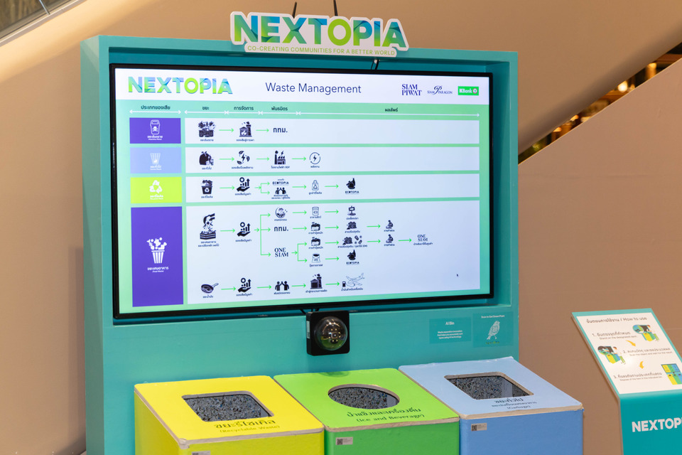 ทั้งนี้ ธนาคารกสิกรไทยยังร่วมสนับสนุน “NEXTOPIA” พื้นที่ใหม่ของสยามพารากอน ซึ่งเป็นเมืองต้นแบบแห่งโลกอนาคต ที่รวมพลังผู้สร้างการเปลี่ยนแปลง ผู้นำอุตสาหกรรม นักนวัตกรรม และคนรักโลก มาร่วมสร้างสรรค์ชุมชนเมืองเพื่อโลกที่ดีกว่า โดยธนาคารได้ร่วมจัดกิจกรรมให้ความรู้แก่ผู้ประกอบการในพื้นที่ ทั้งด้านการใช้บรรจุภัณฑ์รักษ์โลก การประหยัดพลังงาน และการรีไซเคิล พร้อมกันนี้ ยังได้ผลักดันโครงการ NEXTOPIA Zero Waste to Landfill ด้วยการนำเทคโนโลยี AI มาใช้ในถังขยะอัจฉริยะเพื่อคัดแยกขยะก่อนทิ้ง รวมถึงสนับสนุนการนำขยะไปรีไซเคิลและอัปไซเคิลเป็นผลิตภัณฑ์ใหม่เพื่อวางจำหน่ายที่ ECOTOPIA Shop ตลอดจนเปิดโอกาสให้ผู้ประกอบการธุรกิจรักษ์โลกในกลุ่ม K SME ได้มาร่วมจำหน่ายสินค้าในพื้นที่นี้ด้วยเช่นกัน