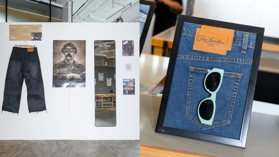 นิทรรศการนี้เป็นการแสดงผลงานครั้งแรกของศิลปินนิวยอร์กที่ตัดเย็บกางเกงยีนส์ จากวัฒนธรรมชีวิตและความรัก ภายในงานนำเอา live Making ในส่วนของการตัดเย็บ มีการนำจักรมาแสดงจริงโดยช่างที่ยากจะได้เห็นวิธีการแบบนี้อีก สำหรับงานแสดงที่กรุงเทพฯนี้ ต้องการให้เห็นถึงจังหวะที่ขับเคลื่อนด้วยงานฝีมือ ความประณีต และการร่วมมือกัน ที่กรุงเทพฯ เสื้อผ้ากลายเป็นมากกว่าการแสดงออก เพราะ Five Families ถือกำเนิดขึ้นจาก “การเคลื่อนไหว” ทุกองค์ประกอบถูกสร้างขึ้นอย่างตั้งใจ การตัดเย็บที่ได้แรงบันดาลใจจากประสบการณ์จริงบนท้องถนน วัสดุที่เลือกเพื่อความยั่งยืน มากกว่าความโดดเด่นเพียงชั่วคราว กราฟิกที่ถูกออกแบบให้เป็น “สัญลักษณ์” ไม่ใช่แค่การตกแต่ง โครงสร้างที่เน้น “การมีตัวตน” มากกว่าการผลิตจำนวนมาก ชิ้นงานของ Five Families ไม่ได้ถูกสร้างมาเพื่อกำหนดตัวตนของผู้สวมใส่แต่มัน “เปิดเผย” ตัวตนของพวกเขา