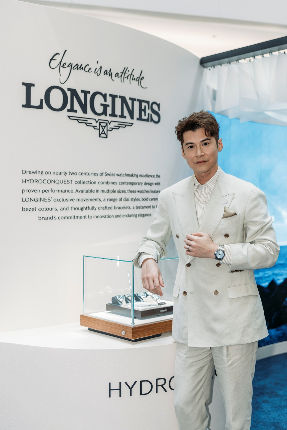 เพื่อเฉลิมฉลองการเปิดตัวคอลเลกชัน HydroConquest รูปลักษณ์ใหม่ Longines (ลองจินส์) ได้เนรมิตป๊อปอัพสโตร์สุดพิเศษขึ้น ณ ศูนย์การค้า Festival Walk ย่านเกาลูนตง ฮ่องกง เพื่อถ่ายทอดเอกลักษณ์อันโดดเด่นของเรือนเวลาผลงานล่าสุดผ่านประสบการณ์ "Five Senses Experience" ประสาทสมผัสทั้งห้าที่น่าหลงใหล โดยในพิธีเปิดงานได้รับเกียรติจาก มาริโอ้ เมาเร่อ Friend of Longines จากประเทศไทย พร้อมด้วย คาร์ลอส ชาน (Carlos Chan) นักแสดงแถวหน้าชาวฮ่องกง ผู้ได้รับการเสนอชื่อเข้าชิงรางวัลนักแสดงนำชายยอดเยี่ยมจากเวที Hong Kong Film Awards ปีล่าสุด มาร่วมสัมผัสร่วมสัมผัสจิตวิญญาณแห่งเสรีภาพและการขับเคลื่อนที่เปี่ยมด้วยจุดหมายของคอลเลกชันนี้ก่อนใคร