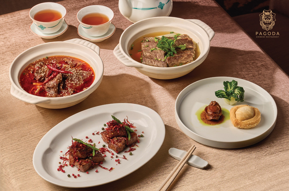 ห้องอาหารจีนพาโกด้า ไชนีส เรสเตอรองท์ ห้องอาหารกวางตุ้งร่วมสมัย นำโดยเชฟออสการ์ ปัน และทีมเชฟมากฝีมือ ร่วมรังสรรค์เมนูพิเศษ “Kagoshima A5 Wagyu Signatures” จำนวน 4 เมนู ที่ถ่ายทอดเอกลักษณ์ของเนื้อวากิวญี่ปุ่นระดับพรีเมียมได้อย่างสมบูรณ์แบบ ทั้งลายไขมันที่สวยงามและความนุ่มละมุนอันเป็นเอกลักษณ์ ให้เลือกลิ้มลองหลากหลายเมนู ได้แก่ เนื้อวากิวคาโกชิมะต้มสไตล์เสฉวน , ซุปใสสไตล์ฮ่องกงพร้อมเนื้อวากิวคาโกชิมะตุ๋น , เนื้อวากิวคาโกชิมะผัดพริกสามสีและพริกแห้ง และพายเนื้อวากิวคาโกชิมะพร้อมหอยเป๋าฮื้อ