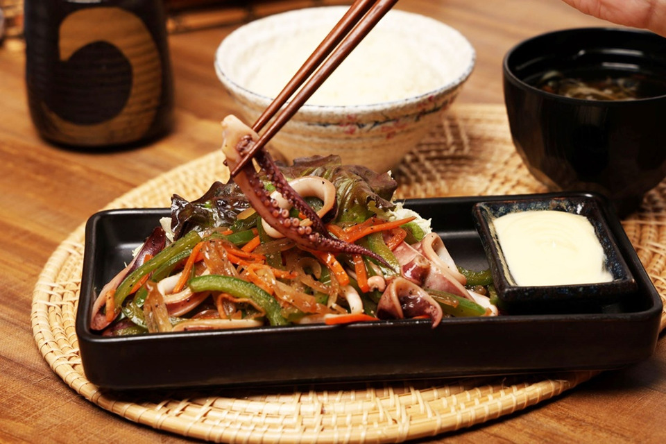 ● ชุดหมึกผัดผักสไตล์ญี่ปุ่น — เซตสุดคุ้ม ครบทั้งโปรตีนและผัก อิ่มได้ในมื้อเดียว