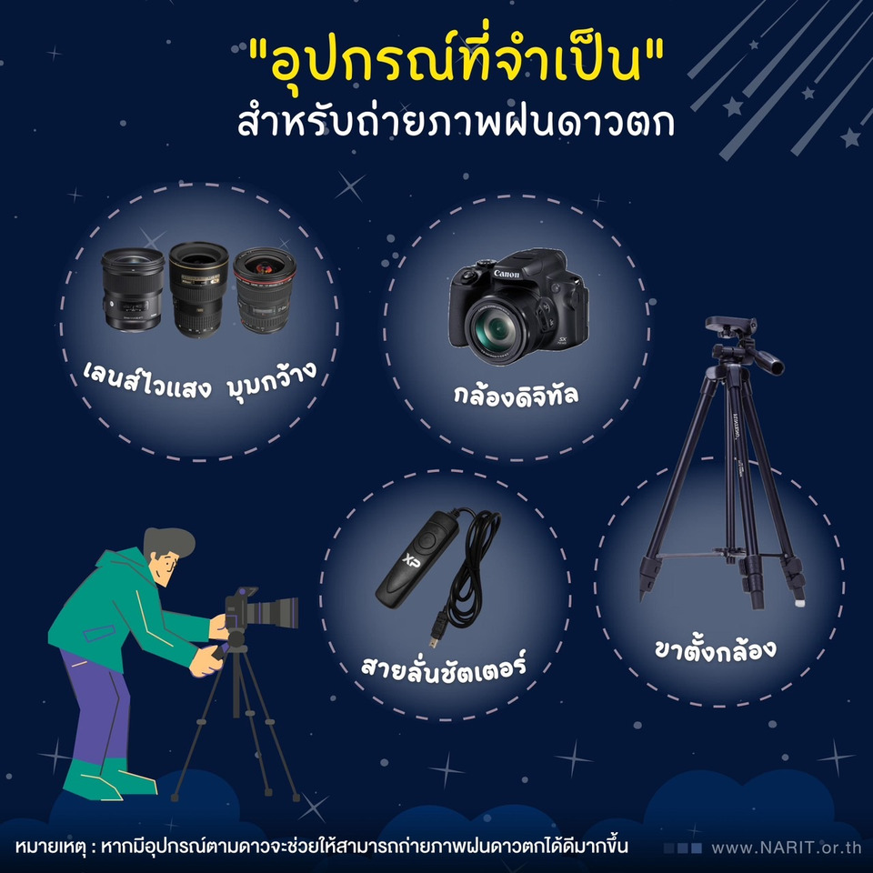 (เดี๋ยวเราจะนำทริคถ่ายภาพฝนดาวตกมาแชร์เร็ว ๆ นี้ ติดตามได้ทางเพจเฟซบุ๊ก NARIT สถาบันวิจัยดาราศาสตร์แห่งชาติ)