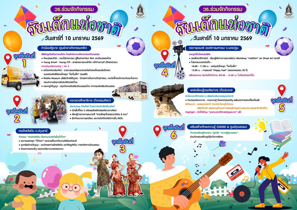 วธ. เติมเต็มวันเด็ก 2569 เสิร์ฟความสนุกควบคู่ความรู้ทั่วประเทศ หนุนพลัง “เรียนดี มีคุณธรรม”เชิดชูสถาบันหลักของชาติ เปิดพิพิธภัณฑ์–โรงหนัง–แหล่งเรียนรู้ฟรี พร้อมยกย่องเด็กและเยาวชนต้นแบบ