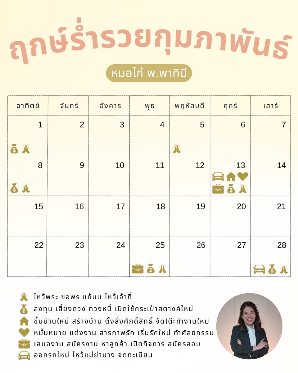 เซฟไว้ใช้ได้ตลอดเดือนค่ะ !! ฤกษ์ร่ำรวยเดือน ก.พ. 69 โดย หมอไก่ พ.พาทินี มาแล้วค่ะ เดือน ก.พ. ฤกษ์ดีมีน้อยค่ะ ฤกษ์ดีมาก ๆ รอเดือนมีนาคมนะคะ