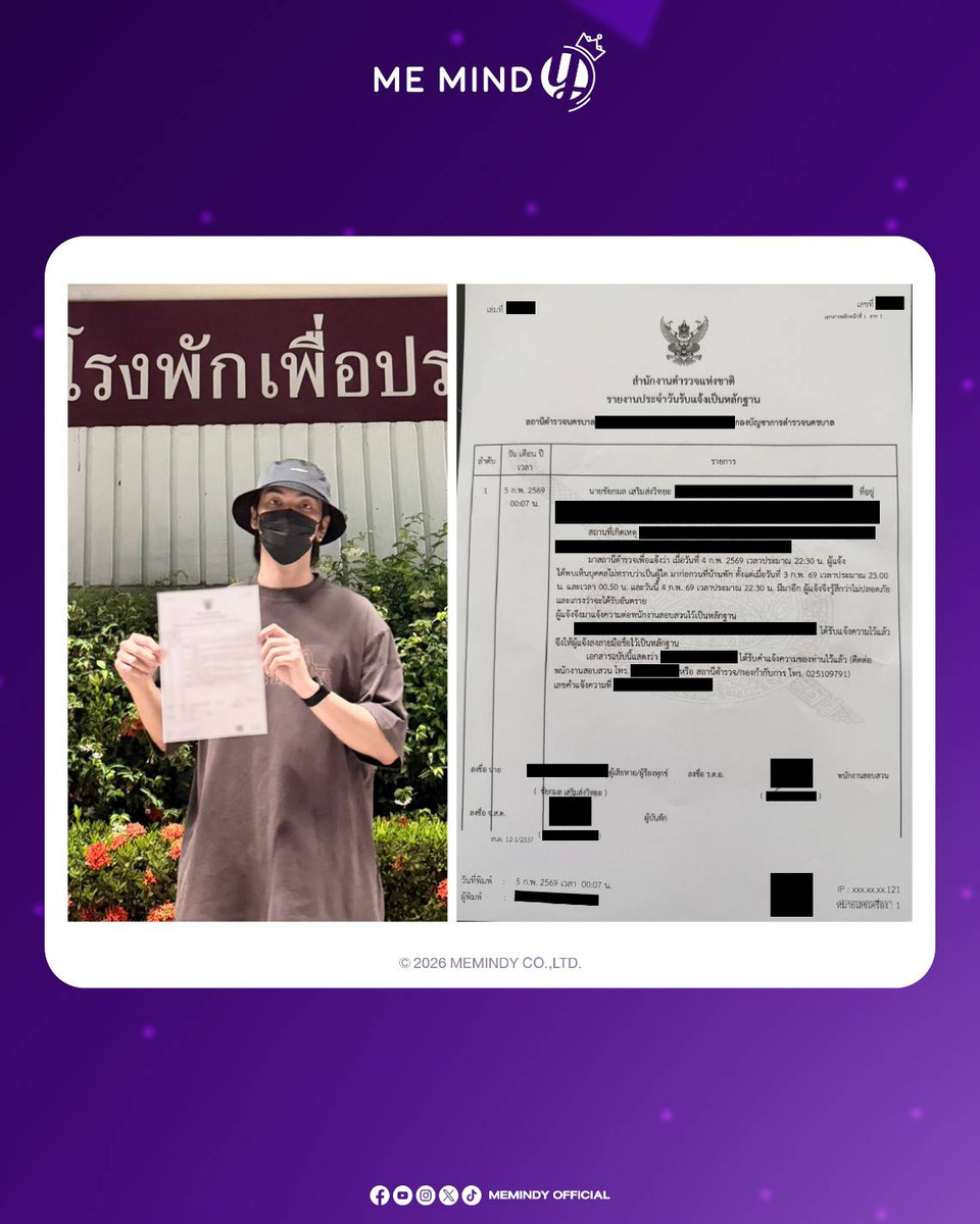 จากกรณีที่ “บอส – ชัยกมล เสริมส่งวิทยะ” ศิลปินในสังกัด บริษัท มี มายด์ วาย จำกัด (ME MIND Y) ถูกบุคคลภายนอกแสดงพฤติกรรมติดตาม สะกดรอย และลอบบันทึกภาพ จนส่งผลกระทบต่อความเป็นส่วนตัวและความปลอดภัย ล่าสุด บริษัท มี มายด์ วาย จำกัด (ME MIND Y) ได้ออกแถลงการณ์ชี้แจงอย่างเป็นทางการ