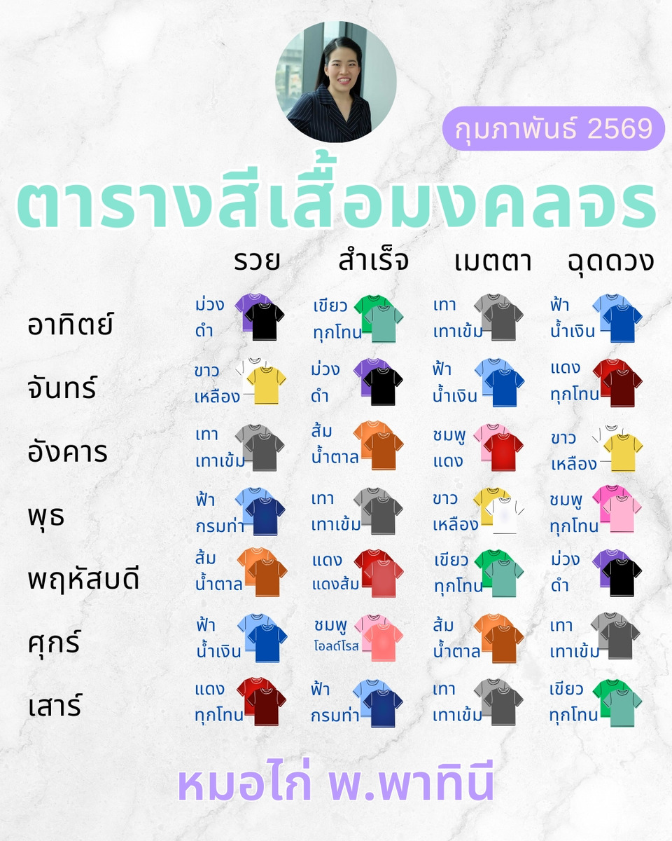 #ตารางสีเสื้อมงคล #หมอไก่ #ดวงกุมภาพันธ์ #สายมู #เสริมดวง #สีมงคล
