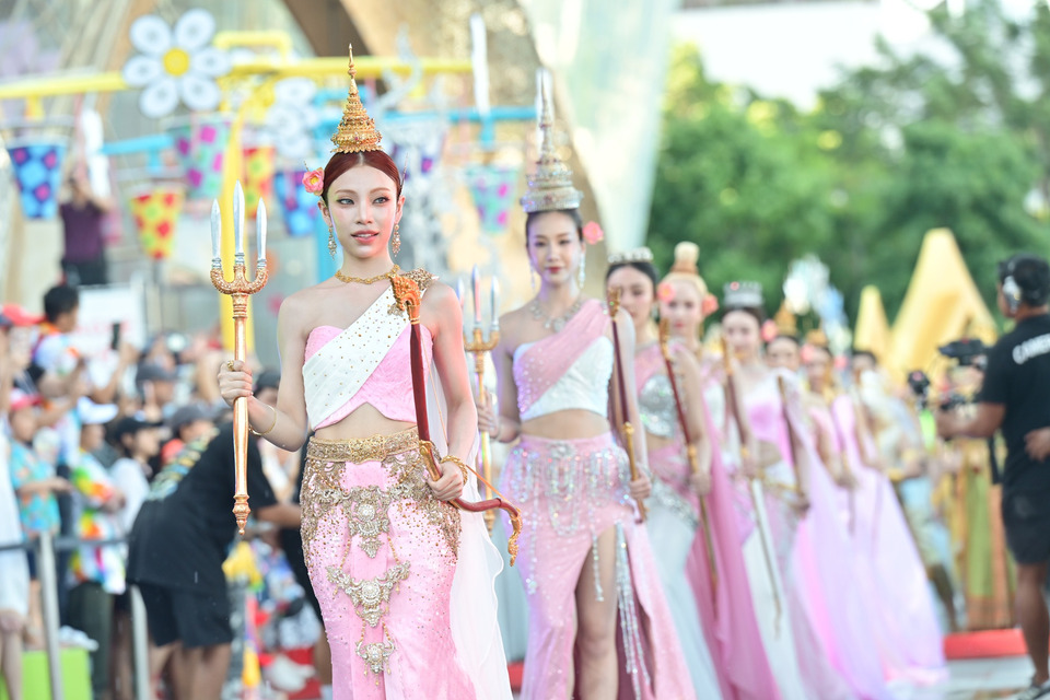 ทำเอาริเวอร์ พาร์ค ไอคอนสยาม เนืองแน่นไปด้วยเหล่าฟอร์อาย รวมถึงประชาชนและนักท่องเที่ยวที่ต่างมารอมารอยลโฉม 7 สาว แฮนน่า, อ๊ะอาย, ตาออม, พั้นช์, ฝ้าย, มายด์ และ โจริญ ซึ่งมาร่วมถ่ายทอดความงดงามของมรดกไทยในฐานะนางสงกรานต์ประจำปี 2569 “รากษสเทวี” ในขบวนแห่ฉลองวันสงกรานต์ โดยงานนี้ทั้ง 7 สาวสลัดลุคเกิร์ลกรุ๊ปสุดแซบ มาปรากฏกายในชุดเทพนารีสุดวิจิตร