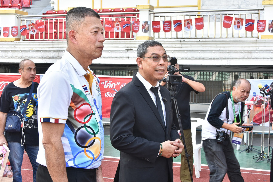ดร.ณัฏฐ์ ธีรณัฐสุภานนท์ ประธานมูลนิธิกองทุนพัฒนาการกีฬา นำคณะเยี่ยมชมการฝึกซ้อม และมอบกำลังใจให้ทีมกรีฑาทีมชาติไทย นำโดย บิว-ภูริพล บุญสอน และ ต้า-สรอรรถ ดาบบัง โดยมี โค้ชจี เจนทรี แบรดลีย์ โค้ชระดับโลกจากสหรัฐอเมริกา คอยติว โดยทัพกรีฑายืนยันตั้งเป้าที่ 17 เหรียญทอง