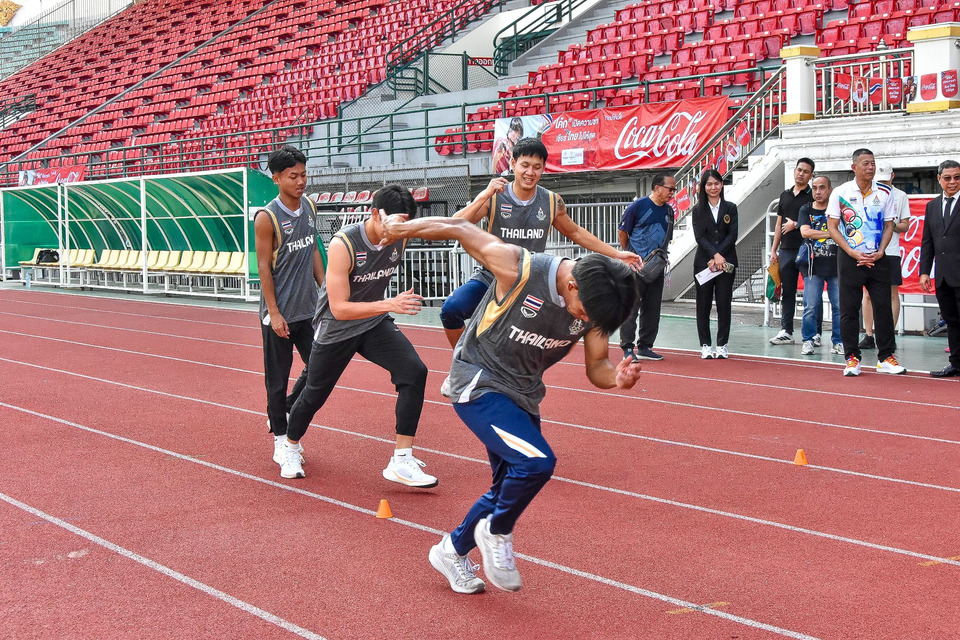 สำหรับนักกีฬาชุดนี้ นำโดย บิว-ภูริพล บุญสอน และ ต้า-สรอรรถ ดาบบัง โดยมี โค้ชจี เจนทรี แบรดลีย์ (Gentry Bradley) โค้ชทีมชาติไทยสัญชาติอเมริกัน มาเป็นผู้ฝึกสอนนักกีฬากรีฑาประเภท วิ่ง 100 เมตร วิ่ง 200 เมตร และวิ่งผลัด 4x100 เมตร