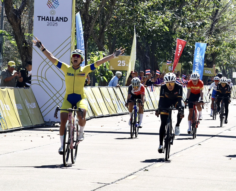 “บีซ” จุฑาธิป มณีพันธุ์ ยังคงความสุดยอดผงาดคว้าเหรียญทองจักรยานประเภทถนนรายการโรดเรซบุคคลหญิงมาครอง นับเป็นเหรียญทองที่ 9 ของทัพสองล้อไทย และเป็นเหรียญทองที่ 2 ของตัวเองในกีฬาซีเกมส์ ครั้งที่ 33 พร้อมประกาศคว้าเหรียญทองที่ 3 จากประเภทลู่ รายการสแครชต์ ซึ่งจะชิงชัยวันที่ 18 ธ.ค.68 ที่เวลโลโดรม หัวหมาก ด้าน “เสธ.หมึก” เผยนักปั่นไทยทำผลงานยอดเยี่ยมได้มา 9 เหรียญทอง 4 เหรียญเงิน 2 เหรียญทองแดง เกินเป้าหมายที่วางเอาไว้ แต่ยังมีการแข่งขันประเภทลู่ให้ชิงชัยอีก 5 เหรียญทอง โดยมีลุ้นจาก “ทีเจ” จาย อังค์สุธาสาวิทย์ รายการคีรินชาย