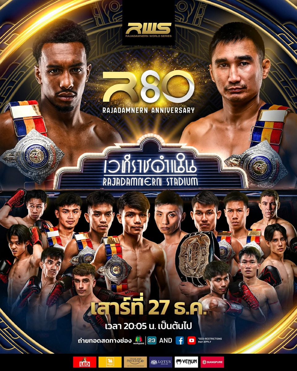 เมื่อวันที่ 24 ธันวาคม 2568 เวทีมวยราชดำเนิน สังเวียนมวยไทยระดับตำนาน บ้านเกิดของมวยไทย จัดงานแถลงข่าวประกาศความพร้อมเตรียมสร้างปรากฏการณ์ครั้งประวัติศาสตร์ฉลองครบรอบ 80 ปี กับรายการมวยไทยศึกใหญ่ที่สุดแห่งปี โดยในทุกวันที่ 23 ธันวาคมของทุกปี ถือเป็นวันสถาปนาเวทีมวยราชดำเนิน และรายการ RWS Rajadamnern World Series ยังคงเดินหน้าสร้างอีเวนต์ใหญ่ประจำปี เพื่อตอกย้ำความยิ่งใหญ่ของวันเกิดสนามอย่างต่อเนื่อง และปีนี้ศึก “R80 Rajadamnern Anniversary” เตรียมระเบิดความมันส์ในวันเสาร์ที่ 27 ธันวาคม 2568 กับการรวมสุดยอดคู่มวยที่ดีที่สุดของปีมาไว้ในค่ำคืนเดียว นำทัพโดย 3 คู่ซูเปอร์ไฟต์หยุดโลก คู่ชิงแชมป์ราชดำเนิน 1 คู่ และคู่ประกอบรายการอีก 4 คู่