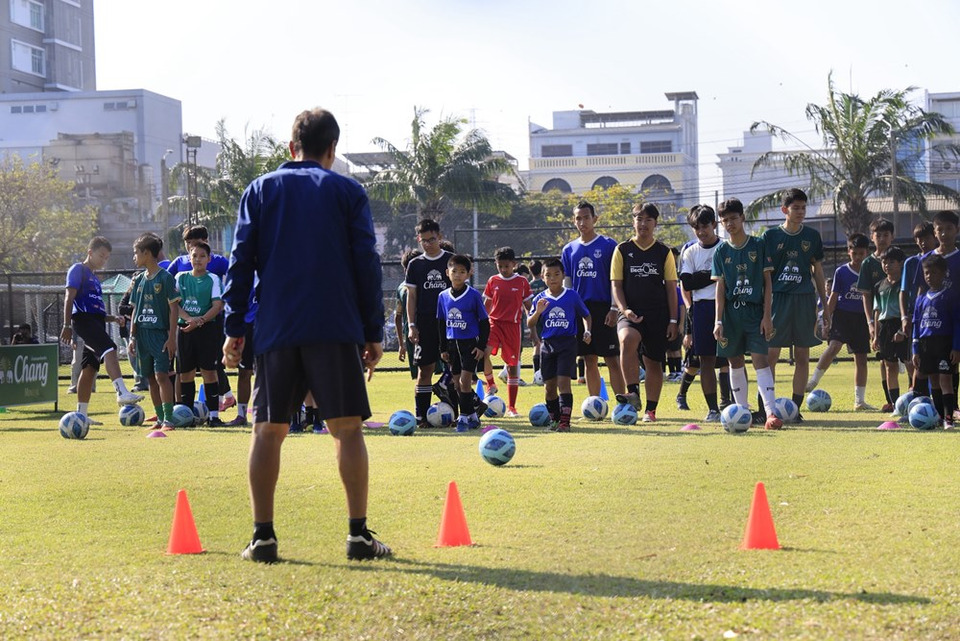 ด้าน “ลีซอ” ธีรเทพ วิโนทัย อดีตนักฟุตบอลทีมชาติไทย ตำนานช้างศึก กล่าวว่า “การได้เห็นน้อง ๆ นักฟุตบอลเยาวชนเข้าร่วมกิจกรรมในครั้งนี้ ทำให้ย้อนนึกถึงช่วงวัยเด็กที่เริ่มต้นเล่นฟุตบอลจากพื้นฐาน ซึ่งถือเป็นก้าวแรกที่สำคัญที่สุดของการพัฒนาสู่การเป็นนักฟุตบอลอาชีพ เนื่องจากพื้นฐานที่ดีจะช่วยสร้างรากฐานที่แข็งแกร่งในการลงเล่นในแต่ละเกม และผมก็เป็นหนึ่งในนักฟุตบอลที่เติบโตจากโครงการ “ช้างไทยไปเอฟเวอร์ตัน” รุ่นแรก ซึ่งได้มีโอกาสไปฝึกทักษะฟุตบอลที่ประเทศอังกฤษ และได้นำองค์ความรู้รวมถึงประสบการณ์ที่ได้รับกลับมาปรับใช้เพื่อพัฒนาฟุตบอลไทย พร้อมขอขอบคุณบริษัท ไทยเบฟเวอเรจ จำกัด (มหาชน) ที่ให้ความสำคัญและสนับสนุนวงการฟุตบอลไทยมาอย่างต่อเนื่อง และในวันนี้ผมและ “จีโน่ เดอะ สแน็ค” ยังได้นำลูกฟุตบอลพร้อมลายเซ็นมามอบให้น้อง ๆ เพื่อนำไปใช้ฝึกซ้อมอย่างสม่ำเสมอ เพื่อก้าวไปสู่ความฝันในการเป็นนักฟุตบอลอาชีพให้ประสบความสำเร็จในอนาคต”