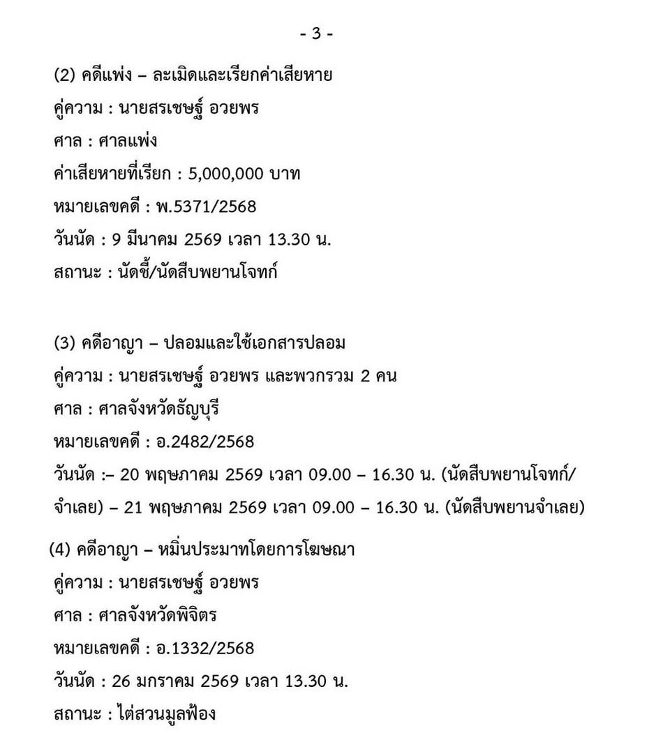 3. คณะกรรมการบริหารสมาคมกีฬาซอฟท์เทนนิสแห่งประเทศไทย มีมติให้ดำเนินการขบวนการตามทางกฎหมายกับนายสรเชษฐ์ อวยพร ดังนี้