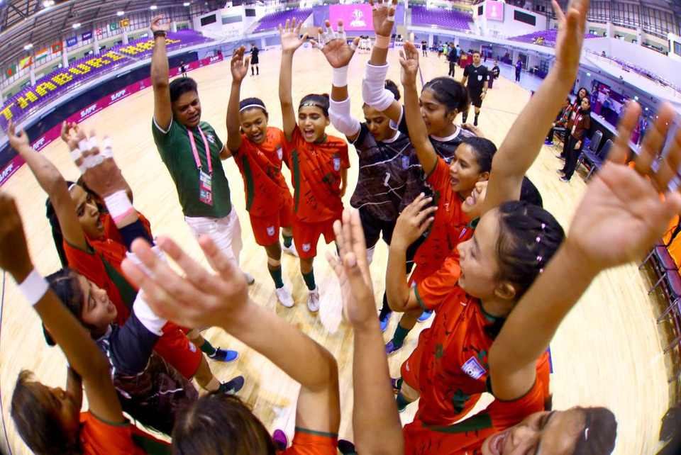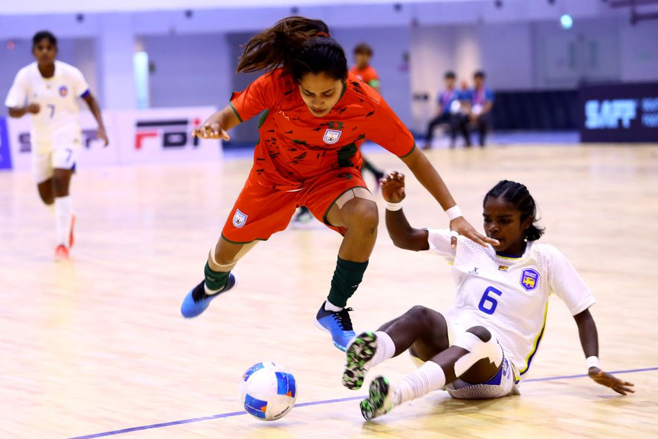 คู่ไฮไลท์ประจำวัน ทีมชาติบังกลาเทศ ที่ยังไม่แพ้ใคร ลงสนามพบกับ ทีมชาติศรีลังกา เกมนี้เริ่มต้นด้วยความตื่นเต้นเมื่อศรีลังกาทำช็อกด้วยการออกนำไปก่อนถึง 2-0 จากการยิงไกลของ "ชานู พาสการัน" ในนาทีที่ 13 และจังหวะจบสกอร์คมของ "อิเมชา คังคานัมลาเก" ในนาทีที่ 16 อย่างไรก็ตาม ทัพสาวบังกลาเทศไม่ยอมแพ้ โดยกัปตันทีม "ซาบินา คาทูน" สวมบทฮีโร่ซัดสองประตูรวดในนาทีที่ 18 และ 20 ช่วยให้ทีมไล่ตามตีเสมอเป็น 2-2 ก่อนจบครึ่งแรก