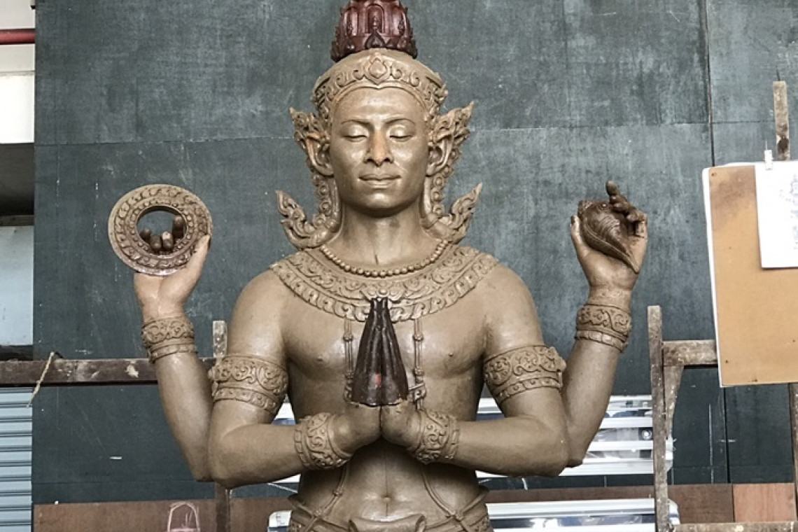 สำนักช่างสิบหมู่เผยประติมากรรมพระนารายณ์ปั้นพระพักตร์ ร.9 แย้มพระโอษฐ์ สง่างาม ต้นแบบชิ้นเดียวประดับพระเมรุมาศ