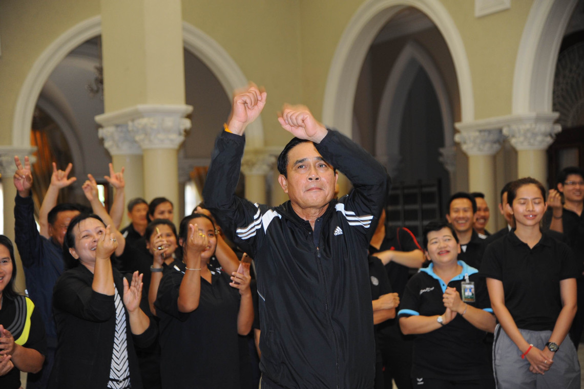เมื่อเวลา 15.30 น. วันที่ 3 พ.ค.ที่ห้องโถงตึกสันติไมตรี ทำเนียบรัฐบาล พล.อ.ประยุทธ์ จันทร์โอชา นายกรัฐมนตรีและหัวหน้าคณะรักษาความสงบแห่งชาติ (คสช.) พร้อมด้วยข้าราชการและเจ้าหน้าที่ประจำทำเนียบรัฐบาลร่วมออกกำลังกายประจำสัปดาห์ โดยนายกรัฐมนตรี ได้ร่วมเต้นแอโรบิค เป็นเวลา 30 นาที โดยมี พล.อ.วิลาศ อรุณศรี เลขาธิการนายกรัฐมนตรี พล.อ.สกล ชื่นตระกูล ที่ปรึกษานายกรัฐมนตรี พ.อ.หญิง ทักษดา สังขจันทร์ ผู้ช่วยโฆษกประจำสำนักนายกรัฐมนตรี คณะทำงาน และข้าราชการทำเนียบรัฐบาล ร่วมออกกำลังกายอย่างคึกคัก