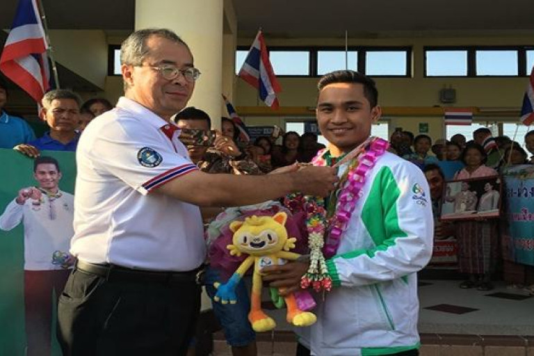 วันนี้(20 ส.ค. 59)เวลา 17.00 น.ที่หลังสถานีรถไฟสุรินทร์ อ.เมือง จ.สุรินทร์ นายอรรถพร สิงหวิชัย ผู้ว่าราชการจังหวัดสุรินทร์ ได้นำส่วนราชการต่างๆ นักเรียน นักศึกษา และประชาชน ต้องรับมอบ ดอกไม้เป็นกำลังใจให้กับ เจ้าดุ่ย นายสินธุ์เพชร กรวยทอง เจ้าของเหรียญทองแดง นักกีฬายกน้ำหนัก รุ่น 56 กิโลกรัม ซึ่งเป้นชาวบ้านโพนม่วง ม่วงสวรรค์ ต.ไพรขลา อ.ชุมพลบุรี จ.สุรินทร์ และ ปุ๊กลุ๊ก-ศิริภุช กุลน้อย ชาวบ้านไปรเวง ต.ตระแสง อ.เมือง จ.สุรินทร์ นักกีฬายกน้ำหนักสาวทีมชาติไทย ในรุ่น 63 กิโลกรัม 2 ฮีโร่ ชาวสุรินทร์ ที่เดินทางกลับบ้านเกิดโดยรถไฟ ถึงแม้ว่า ปุ๊กลุ๊ก จะพลาดการได้เหรียญโอลิมปิกในครั้งนี้ก็ตาม แต่ชาวจังหวัดสุรินทร์ ก็ยกย่องให้เป็นฮีโร่ ที่สร้างชื่อเสียงให้กับประเทศไทยและชาว จ.สุรินทร์ แต่เนื่องจากในวันนี้ น้องปุ๊กลุ๊ก ติดภาระกิจจึงไม่สามารถมาร่วมงานในครั้งนี้ได้