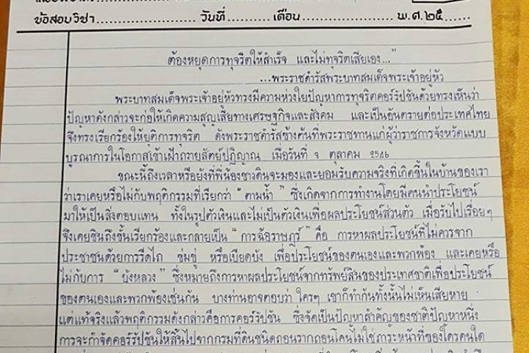 ชื่นชมเด็ก ม.6 เชียงคานคว้ารางวัล "คัดลายมือ" วันภาษาไทยแห่งชาติ ปี 2560 โดยน้อมนำพระราชดำรัสของในหลวง รัชกาลที่ ๙ "ต้องหยุดการทุจริตให้สำเร็จ และไม่ทุจริตเสียเอง" มาเผยแพร่