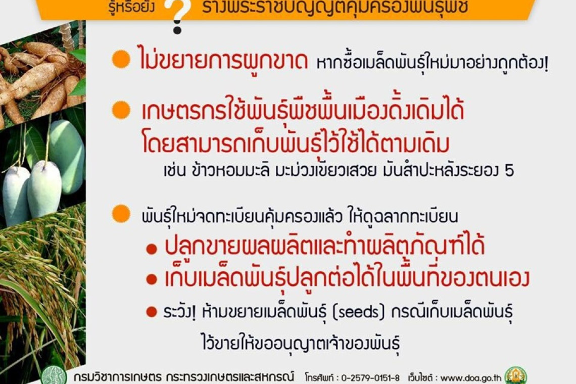 ดร.สุวิทย์ ชัยเกียรติยศ อธิบดีกรมวิชาการเกษตร เปิดเผยว่า ตามที่มีข่าวกล่าวอ้างว่ากรมวิชาการเกษตรพูดไม่หมดในประเด็น มาตรา 35 ในร่างพ.ร.บ.คุ้มครองพันธุ์พืชพ.ศ...กรณีการอนุญาตให้เกษตรกรเก็บเมล็ดพันธุ์พืชใหม่ที่จดทะเบียนคุ้มครองไปปลูกต่อได้ กรมฯ ขอชี้แจงว่า กฎหมายฉบับปัจจุบัน มาตรา 33(4) และร่างใหม่ มาตรา 35 ต่างก็มีวรรคแรกว่า เกษตรกรสามารถเก็บพันธุ์ไปปลูกต่อได้ ซึ่งเป็นหลักสำคัญ อย่างไรก็ตาม ทั้งกฎหมายปัจจุบันและร่างใหม่ ต่างก็กำหนดอำนาจให้รัฐมนตรีโดยความเห็นชอบของคณะกรรมการคุ้มครองพันธุ์พืชสามารถประกาศจำกัดปริมาณการเก็บพันธุ์ไปปลูกต่อไว้เช่นกันเพียงแต่ว่า กฎหมายเขียนวิธีการจำกัดปริมาณไว้แตกต่างกัน คือ กฎหมายปัจจุบันมีรูปแบบตายตัวคือ ให้เกษตรกรเก็บได้ไม่เกินสามเท่าของปริมาณที่ซื้อมา ส่วนร่างใหม่เสนอแก้ไขเป็นจำกัดได้ทั้งหมดหรือบางส่วน ซึ่งอาจไม่ใช่สามเท่าก็ได้ ตัวอย่างเช่นอาจกำหนดด้วยจำนวนพื้นที่ปลูก เช่นให้เกษตรกรเก็บได้ไม่เกิน 15 ไร่ หรือไม่เกินห้าเท่าก็ได้ ขึ้นอยู่กับความเหมาะสมตามสถานการณ์นั้นๆ