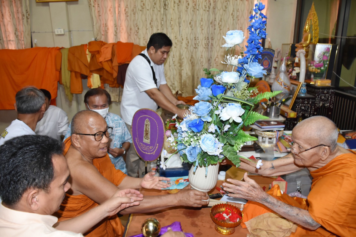 โดยมีพระสุพรรณวชิราภรณ์ เจ้าคณะจังหวัดสุพรรณบุรี เป็นประธานฝ่ายสงฆ์ มีพระสงฆ์ 9 รูป สวดเจริญพระพุทธมนต์ โดยหลวงปู่สมบุญได้ตักบาตรพระ จากนั้นได้ให้หลวงปู่สมบุญ นอนบนที่นอน ที่ทางคณะได้จัดเตรียมไว้ แล้วพระสงฆ์ทำพิธี ชักผ้าบังสกุลตาย โดยจำลองเหมือนมรณะภาพไปแล้ว จากนั้นก็ชักผ้าบังสุกุลเป็น สำหรับพิธีกรรมดังกล่าวเป็นความเชื่อที่ว่าจะช่วยต่ออายุให้แก่หลวงปู่สมบุญ เสมือนเกิดใหม่ นอกจากนี้ภายในงานยังมีการแสดงรำสาวภูไท เป็นการแสดงพื้นบ้านของคณะสตรีแม่บ้านชาวลำพันบองและการแสดงลิเก